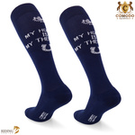 ( ilość produktów: 16 )Podkolanówki jeździeckie SPDH - ciemnoniebieskie - wzór "My horse is my therapy"